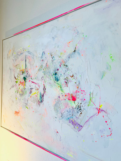 "Einzigartige, stilvolle, unverwechselbare Kunst. Wir freuen uns jeden Tag über die farbenfrohe Bereicherung in unserem Wohnzimmer"